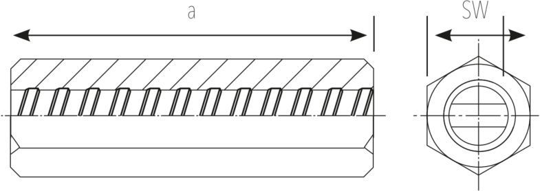 | 21201 | Connecting hex nut | 12.5 | 90 | 24 | 50 | 50 | 0.24 |