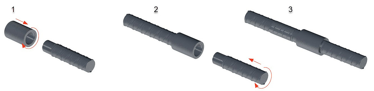 2. To the base bar with the sleeve, screw the bar with threading - B type.