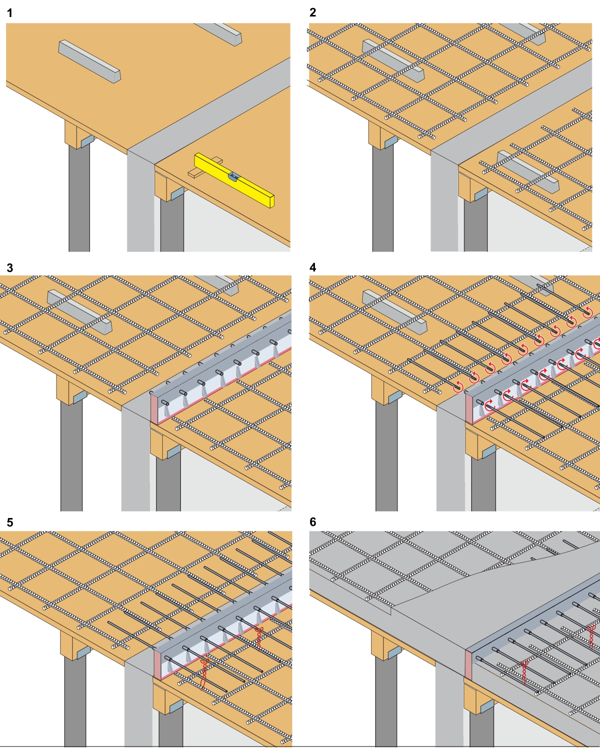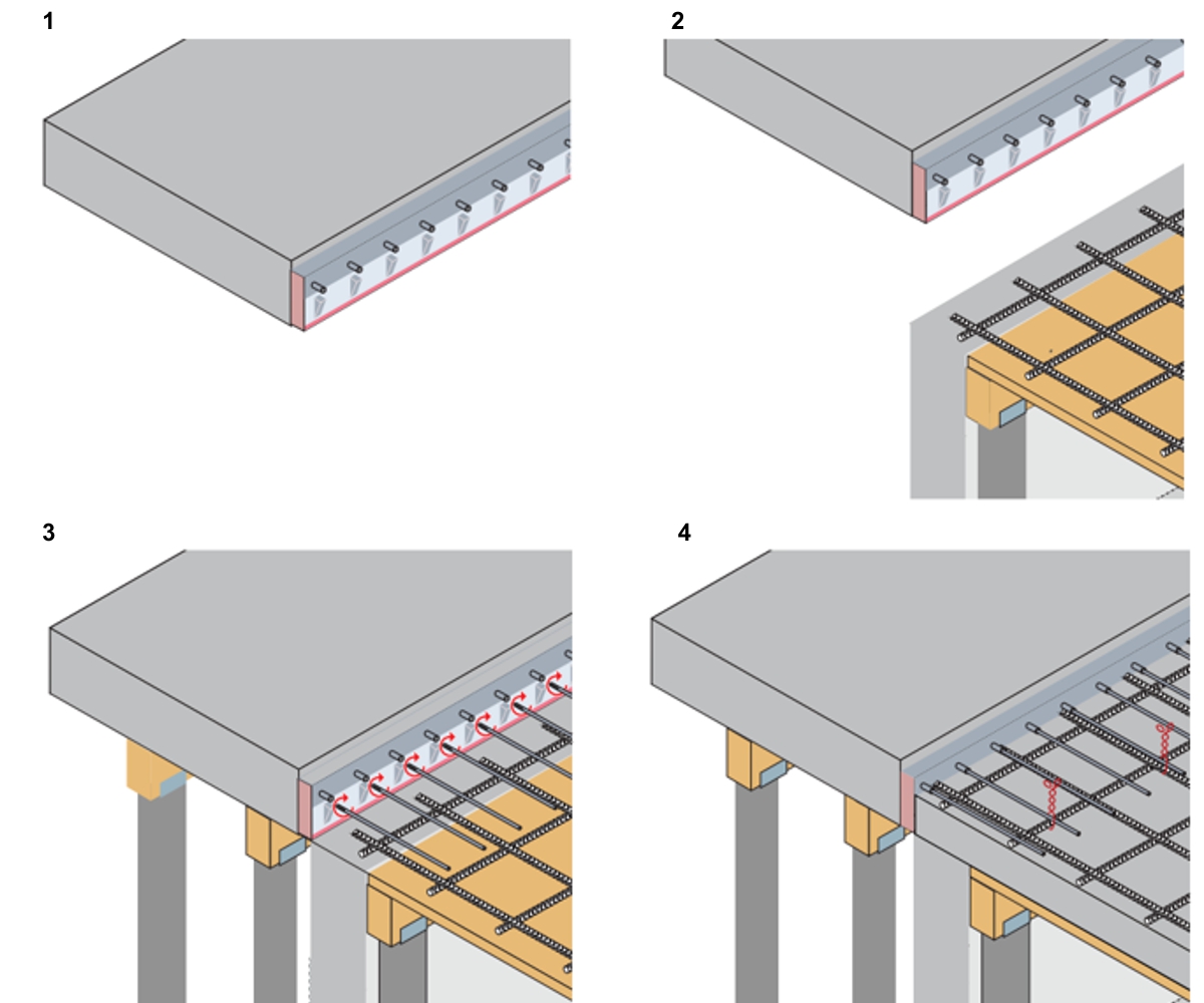 Installation of balcony connectors when balconies are made on site.