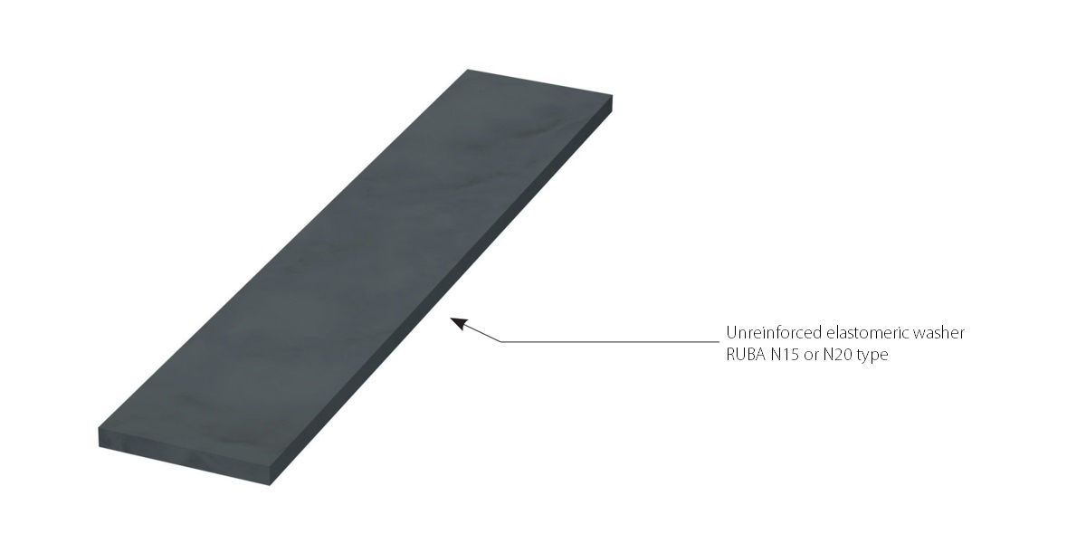 N 15 and N 20 unreinforced elastomeric washers are produced in thicknesses of 5 mm, 10 mm, 15 mm and 20 mm. The shorter side should be at least five times the thickness of the washer. The washer should be placed in the area of the static reinforcement of the support and the supported element.